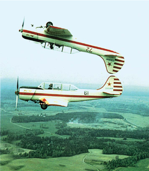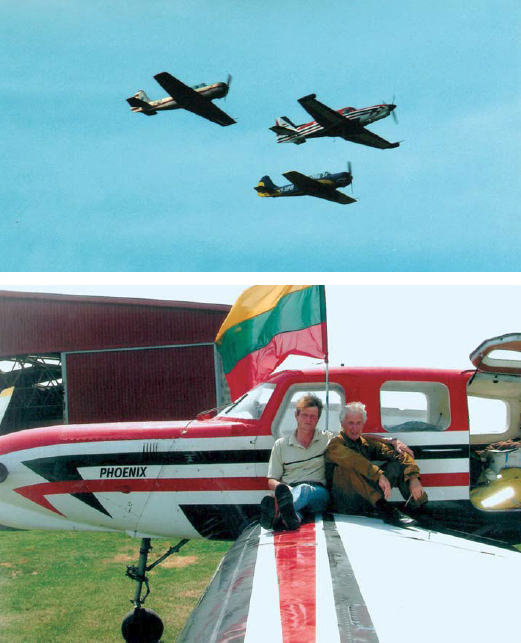 Štai, pavyzdžiui, dvi nuotraukos: pirmoje – skrenda du lėktuvai, kur mes maždaug 12 centimetrų atstumu skrendame vienas šalia kito (aš skrendu žemyn galva viršuje, o kolega R. Noreika skrenda apačioje) – tai išties fenomenalus skrydis, sakyčiau, vertas Gineso rekordų knygos!.. Kitoje nuotraukoje – trijų lėktuvų skrydis po Neries tiltu. Laiko atžvilgiu šias dvi nuotraukas skiria 30 metų. Būtent tiek metų mes drauge su pilotu Robertu Noreika skraidome,