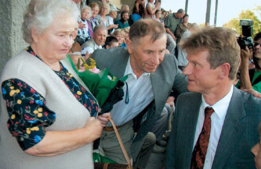 Česlovas Juršėnas: „Mieli bičiuliai, aš irgi su jumis visais džiaugiuosi, kad mes galutinai realizuojame idėją, kuri kilo pernai. Tik aš norėčiau kai ką patikslinti. Pirminė idėja kilo mano kolegoms Ignalinos socialdemokratams, jų atstovas Vilius Cibulskas čia stovi. Ir tik po to aš pats „įsikibau“ į šitą idėją, vedžiau derybas su visais Prezidentais, kad iš tikro tinkamu laiku, kaip nurodė Nacionalinio parko direktorius, būtų sodinami ąžuolai. Taip palaipsniui, neskubėdami, nes ąžuolai auga ilgai, vadinasi, ir sodinti juos reikia tinkamai pasiruošus, kad augtų šimtmečius. Be abejo, jie praaugs mus, džiugins mūsų vaikus, anūkus, proanūkius... Aš dvigubai džiaugiuosi ir dėl to, kad ši vieta – tai geografinis, kartografinis, turistinis taškas. Ir šitas taškas – Ignalinos labui. Ignalinos rajonas gražus savo gamtos turtais, Palūšė, Nacionalinis parkas, Ladakalnis – gausiai lankomos vietos turistų bei