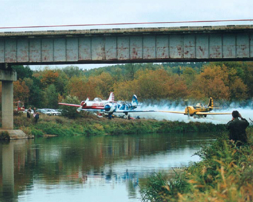 Būtent mūsų pilotažinės grupės susiskraidymo faktorius ir nulėmė tai, jog pagerbdami šviesios atminties pilotą Leoną Jonį, mes nusprendėme pakartoti trijų sportinių lėktuvų skrydį po tiltu.